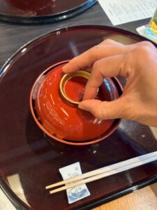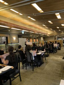 普段何気なく使っているお箸の歴史や和食のフルコースのメインのお話、懐紙の使い方、それぞれのお料理のいただき方などなど、知らなかったことがたくさんあり、参加者の皆さんからも驚きの言葉がたくさん出るとともに、お料理や所作について興味を持たれ質問をされる方もたくさんおられました。また「和食の所作は女性を美しく魅せる」ということで、みなさんとても真剣に講師の方のお話に耳を傾けていらっしゃいました。