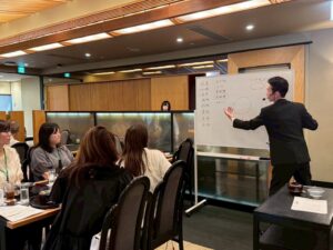 今回初めての和食でしたが「とても良かった!」のお声をたくさんいただき、参加者の皆様にご満足いただけたイベントとなりましたので、今後も『国際交流』という名前のようにフランス料理、和食に限らず幅広いジャンルに目を向け、たくさんの方にご参加いただけるテーブルマナーを開催していければと思います。